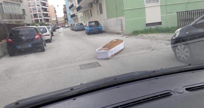 Augusta. Una bara in mezzo alla strada. E la foto diventa virale.