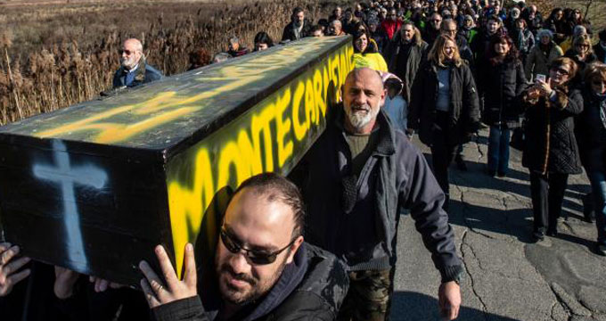 Una bara, un carro funebre, una cerimonia e persino un affollatissimo corteo per celebrare la morte immaginaria della Valle Galeria, dove – lo ha ordinato la Regione, lo ha deciso il Campidoglio – sorgerà la nuova discarica di Monte Carnevale e dove fino al 2013 si trovava Malagrotta, per quasi 50 anni Buca senza fondo per tutti i rifiuti della Capitale.
