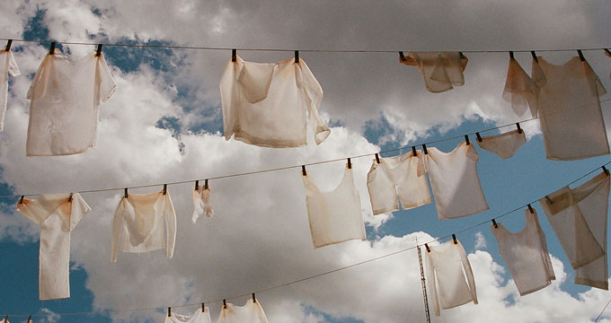 Potrei paragonare il lutto a quei vestiti che vanno asciugati d’inverno. Quelli che, appena partoriti da un oblò come da una calda placenta, escono ancora intorpiditi da un sonno certamente agitato e vengono ad interfacciarsi con il freddo improvviso che ghiaccia le ossa rendendole di porcellana bianca e delicata. Ecco sì, un vestito che, appeso sullo scheletro di uno stendino schiavo delle intemperie, non si sa quando si asciugherà e per quanto tempo debba rimanere lì in attesa del totale assorbimento di un timido sole che in questa stagione si nasconde dietro a nuvole rapide e menefreghiste. E ogni tanto quel tessuto lo tocchi, per sentire a che punto è, se è ancora bagnato, umido, per comprendere quanto ci sia ancora da attendere.