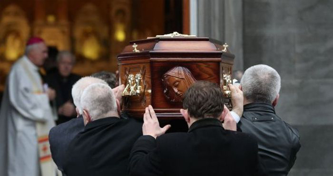 Il corpo di Dolores O’Riordan, riposto in una bara aperta, è stato esposto nella chiesa di St. Joseph, nella sua città natale, Limerick, per permettere ai fan di dare l’ultimo saluto alla cantante dei Cranberries: si tratta di un privilegio che viene solitamente concesso solamente a presidenti, papi e alte cariche dello stato. La contea di Limerick ha proclamato tre giorni di lutto che si concluderanno martedì 23 gennaio, giorno in cui verrà celebrato il funerale. La chiesa di St. Joseph è stata per l’occasione decorata con rose bianche e fotografie della cantante, compresi gli scatti che la ritraggono insieme a Papa Giovanni Paolo II, che Dolores aveva incontrato in Vaticano due volte. Le canzoni incise dalla cantante nel corso della sua carriera hanno invece fatto da sottofondo musicale. La bara è stata accompagnata in chiesa dalla madre della cantante e dai suoi sei fratelli. I fan hanno raccontato che Dolores, nella bara, indossava un abito nero e stringeva tra le mani un rosario. Accanto alla bara sono stati sistemati i fiori che le sono stati donati dagli altri membri dei Cranberries, con una dedica: “The song has ended but the memories linger on” (“La canzone è finita, ma i ricordi persistono“).