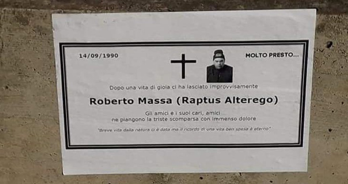 Cagliari. Finti necrologi sotto casa di Roberto degli Alter Ego.