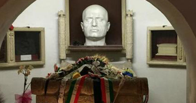 La tomba del Duce cade a pezzi. Sorpresa: i lavori li paga Alleanza Nazionale.