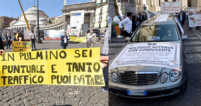 Tornano in piazza i lavoratori dei bus turistici e gli autisti di Ncc a Napoli. «Siamo una categoria fantasma», lamentano i manifestanti riuniti in piazza del Plebiscito, davanti alla Prefettura.