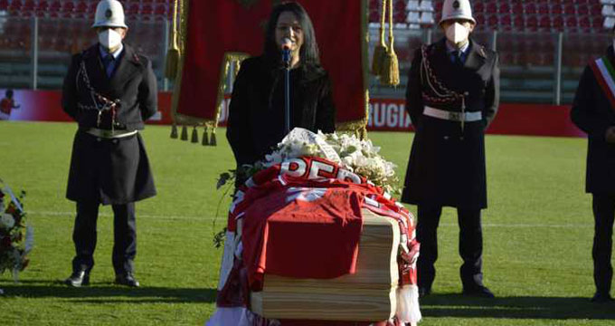 A nome della città, ha portato il saluto il sindaco Andrea Romizi. “È stato un esempio: ha scritto pagine importanti della memoria di Perugia“. Il presidente del Perugia Massimiliano Santopadre ha assicurato “massima apertura nel poter fare qualcosa per ricordarlo“. Fra le proposte emerse in questi giorni, l’intitolazione a Paolo Rossi del settore giovanile. Di giovani ha parlato proprio il cappellano del Grifo, padre Mauro Angelini, ricordando l’umanità di Rossi quando “di nascosto andava a trovare i bimbi malati all’ospedale. Ora gioca nelle praterie celesti non solo con Scirea e D’Attoma, ma anche quei bambini malati di leucemia“. Pablito, campione del mondo nel 1982 e giocatore del Perugia nella stagione 1979-’80, è stato salutato anche da un ex Grifone che ha rappresentato le vecchie glorie biancorosse, Franco Vannini. Al termine della cerimonia il feretro di Paolo Rossi è stato portato al cimitero di Perugia per la cremazione.