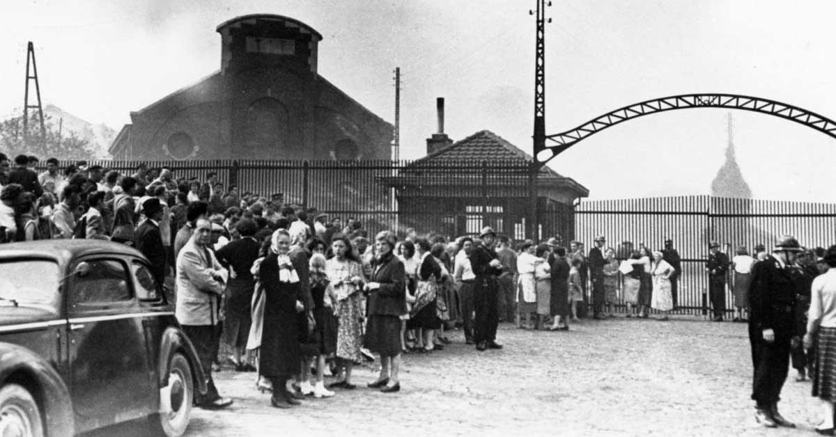 I funerali di Togliatti, 1972, colori acrilici e collage su carta, Museo d’arte moderna di Bologna