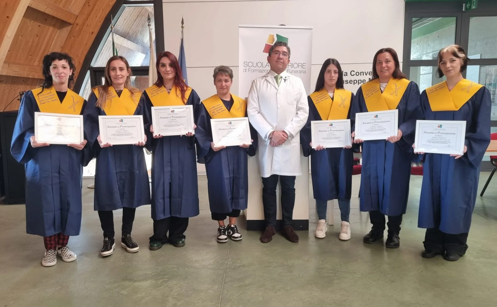 Anche in questa edizione un gruppo tutto al femminile. Alcune di loro erano al primo approccio con i temi della funeraria. Altre, sia pur giovanissime, con una esperienza alle spalle e tanta voglia di progredire.