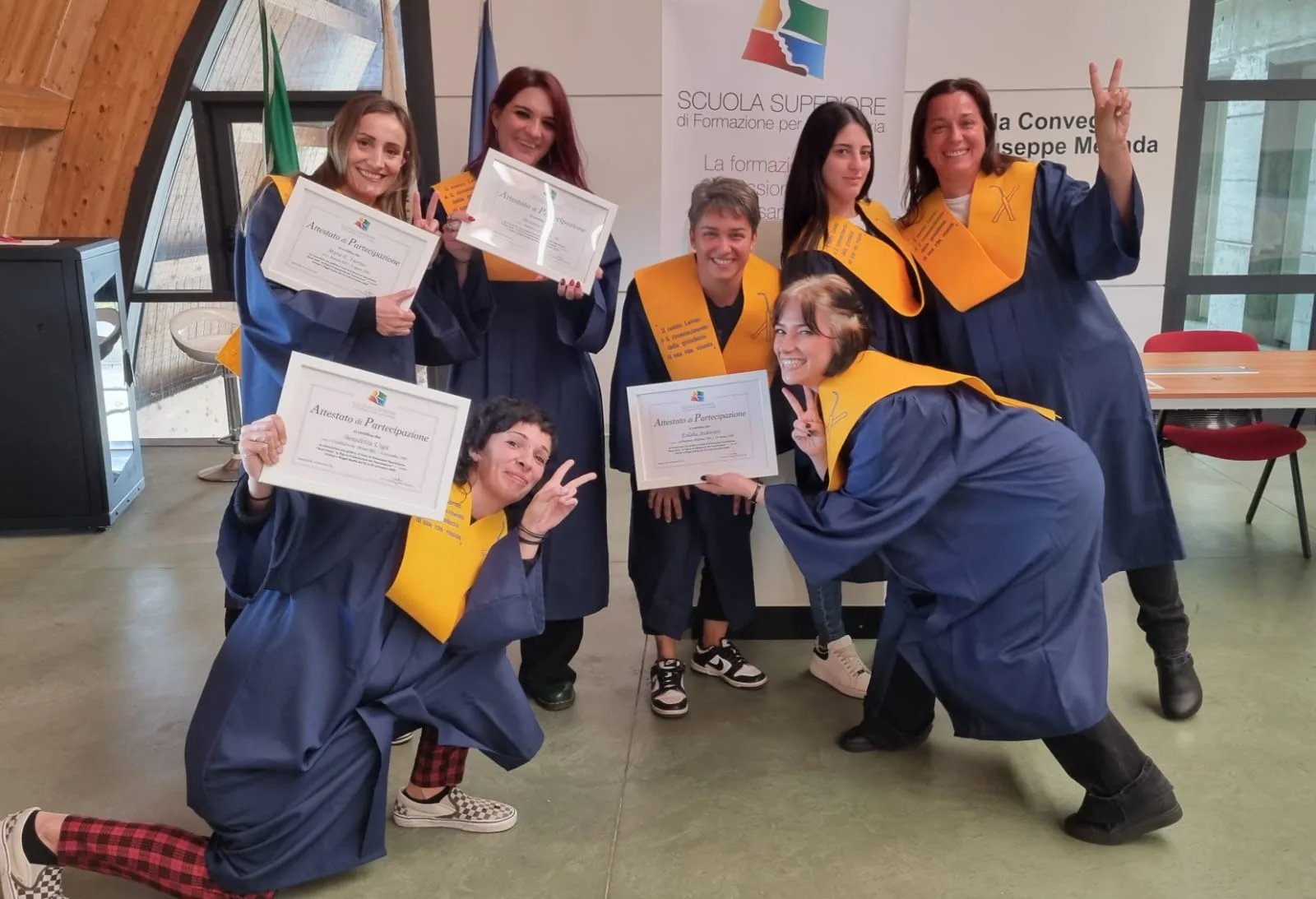 Coinvolte e molto motivate, le 7 partecipanti vere protagoniste di questo corso: Eulalia, Maria Elena, Sara, Susanna, Francesca, Aurora, Benedetta.