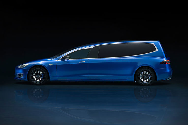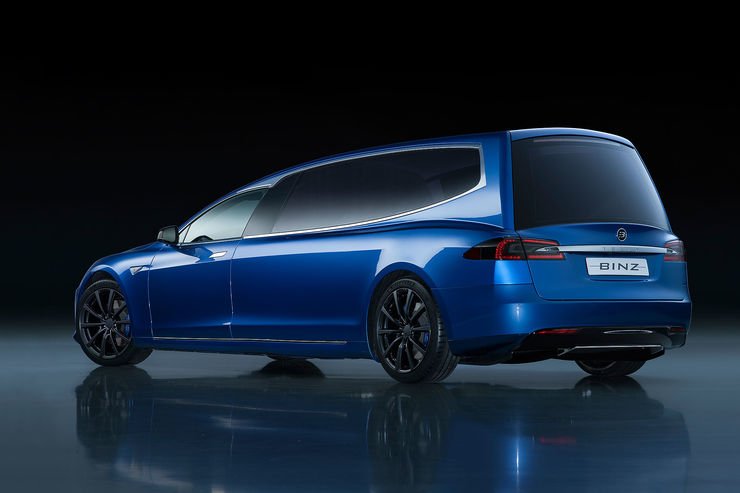 Al Befa Forum di Amburgo, l’allestitore Binz ha esibito un veicolo per un addio “politicamente corretto” sviluppato sulla base di una Tesla Model S, il carro funebre Binz E. L’anno scorso si era già vista una quasi analoga versione da 4,77 metri di lunghezza messa a punto dagli olandesi di RemetzCar. Esteticamente la vettura da cerimonia è sostanzialmente identica fino al montante, cui segue poi un tetto dal profilo molto pronunciato. La Binz E gratifica la vista con una ampia superficie vetrata laterale, anche se l’occupante non è in grado di apprezzarla.
