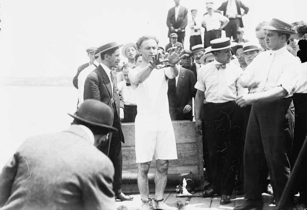 Negli anni ‘90 dell’Ottocento, l’arte dell’illusionismo era dominata da spettacoli di levitazione e ipnosi, ma Houdini decise di percorrere una strada nuova, concentrandosi sulle evasioni. Fu con la sua celebre “Sfida delle manette” che divenne famoso: invitava le autorità locali a trattenerlo in una cella, con ogni genere di manette e catene. Inutile dire che Houdini ne usciva sempre vittorioso, guadagnando il titolo di “Re delle Manette” e un’audience che cresceva spettacolo dopo spettacolo.