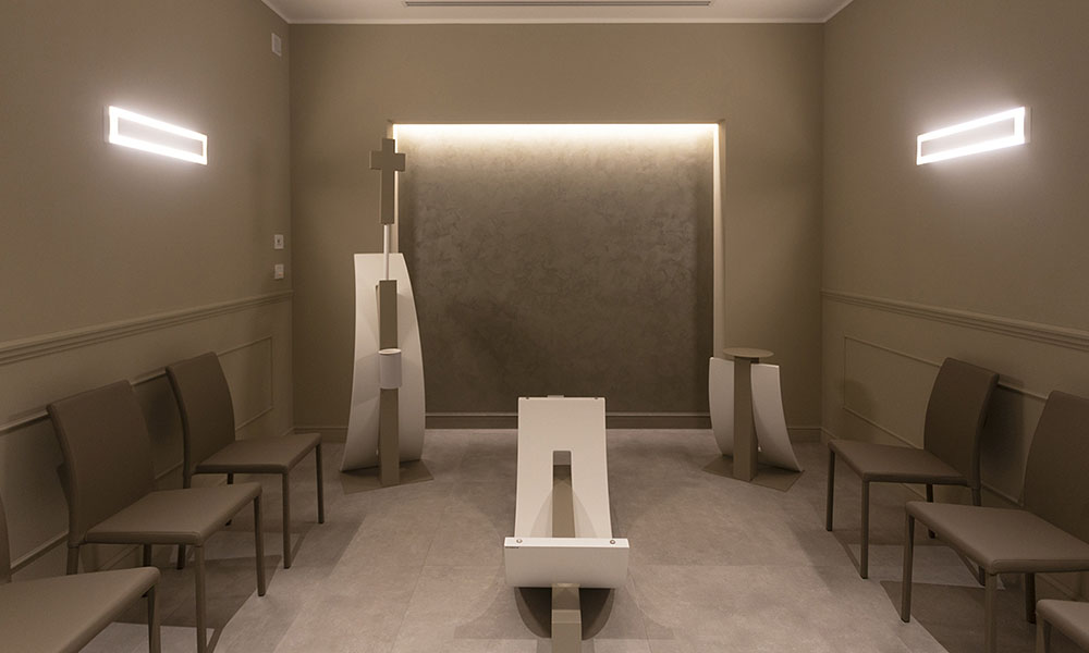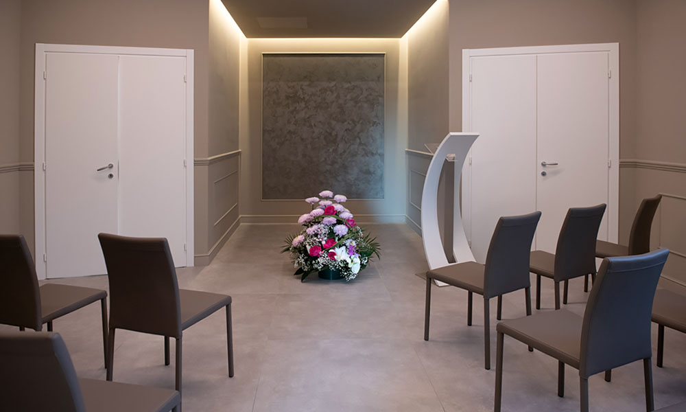La Casa Funeraria ospita quattro camere ardenti e la sala per cerimonie oltre agli spazi tecnici richiesti per legge.