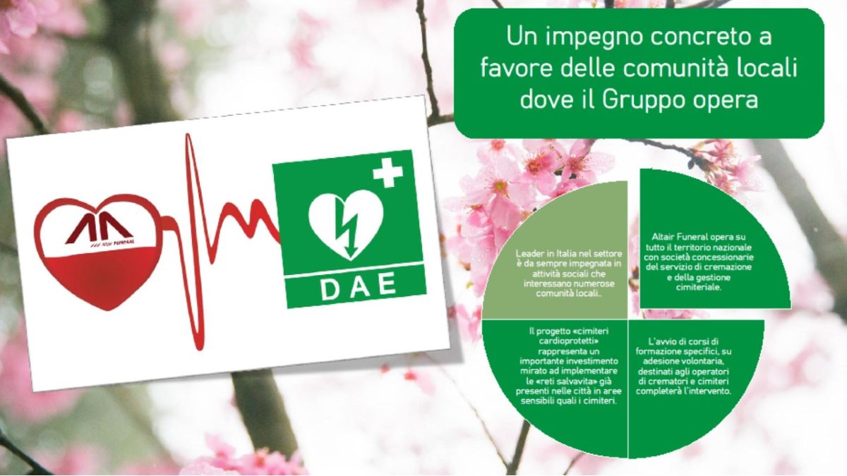 Il progetto “Cimiteri Cardio Protetti” si inserisce in una più ampia visione di responsabilità sociale promossa dal Gruppo Altair, che ogni anno investe in cultura, solidarietà e sostegno a soggetti svantaggiati.