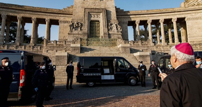 Bergamo riabbraccia 363 suoi figli Urne benedette dal Vescovo al cimitero.