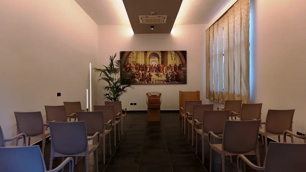 - Una grande sala del commiato, pensata per accogliere cerimonie religiose e laiche.