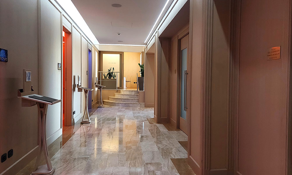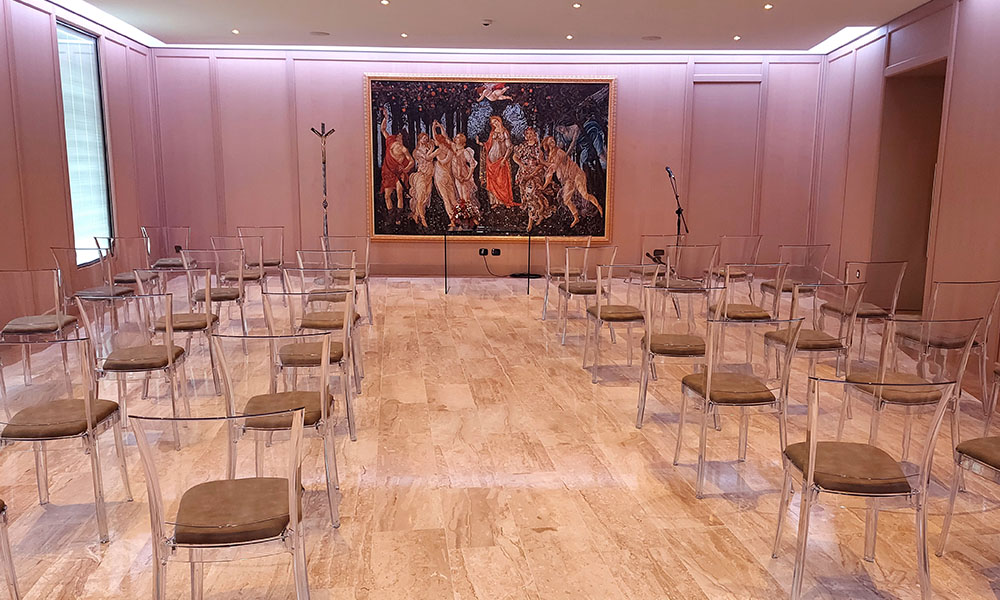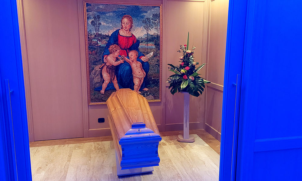 La Casa Funeraria Domus Alia dispone di quattro suite, ciascuna composta da un’area “living” e da una camera ardente, progettate per mettere a disposizione di familiari e amici un ambiente sereno e riservato, arricchito da diverse opere dell’artista Dino Maccini, il più grande mosaicista contemporaneo. Una grande sala del commiato, flessibile e aperta a ogni esigenza, permette di organizzare riti religiosi o laici, pubblici o privati, a dimostrazione dell’impegno profuso dalle Onoranze Funebri Angelo Rossi nel fornire un servizio personalizzato.