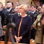 La piazza e il Duomo gremito di cittadini hanno dato l’ultimo saluto al maggiore pilota collaudatore trentaseienne Gabriele Orlandi, precipitato con il suo velivolo Eurofigther Typhoon domenica scorsa durante una manifestazione aerea nel mare di Terracina. Funerale di Stato per il pilota con la presenza del ministro della difesa Roberta Pinotti che ha sorretto la mamma Monica Magnani che insieme al marito Riccardo e alla figlia Letizia seguiva la bara del figlio. Alla presenza del comandante di Stato Maggiore e di decine e decine di rappresentanti di tutte le forze militari e d’ordine, nonché di amici e di pari corso di Gabriele Orlandi, ha celebrato il rito sacro monsignor Santo Marcianò, ordinario militare.