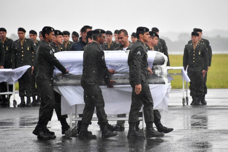 É diventato un enorme sacrario a cielo aperto lo stadio della Chapecoense dove migliaia di persone si sono radunate per ricordare le 71 vittime del distastro aereo che ha praticamente cancellato la squadra di calcio volata in Colombia per la finale di Copa Sudamericana. Nell’Arena Condà si sono celebrati i funerali degli sfortunati brasiliani, dopo che per tutta la giornata è proseguito il doloroso rito del rimpatrio dei corpi.