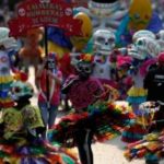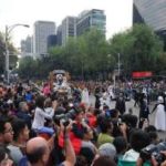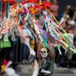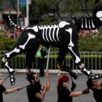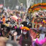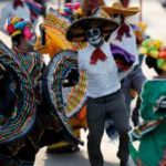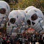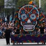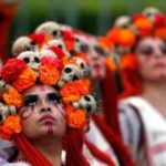 Migliaia di persone travestite da scheletri hanno sfilato per Città del Messico per il “Giorno dei Morti”. La parata quest’anno è stata dedicata alle 228 vittime del terremoto: tutti hanno camminato dietro un enorme pugno chiuso fatto di caschi e picconi. Il pugno era stato il segnale dei soccorsi per chiedere silenzio e per sentire se qualcuno era ancora vivo sotto le macerie. Trecentomila i partecipanti, 700 i performer, che hanno danzato e cantato canzoni messicane. Il colorato festival ogni anno celebra i cari che sono deceduti: in genere è un momento che si vive in famiglia, raccolti attorno alle tombe, ma per il secondo anno il festival si fa anche in grande, a Città del Messico, per attrarre più turisti.