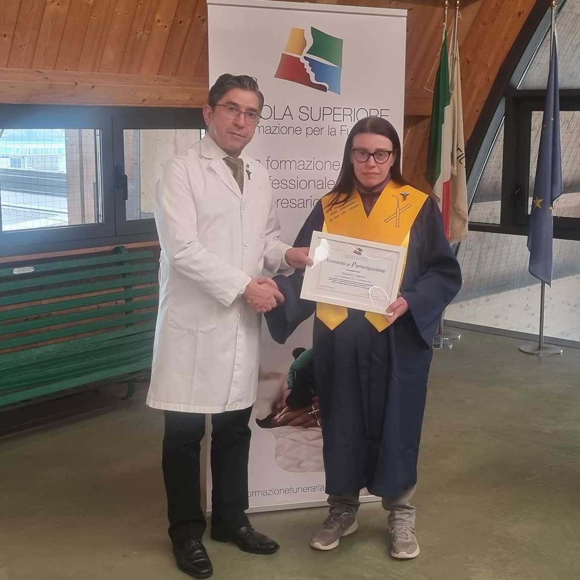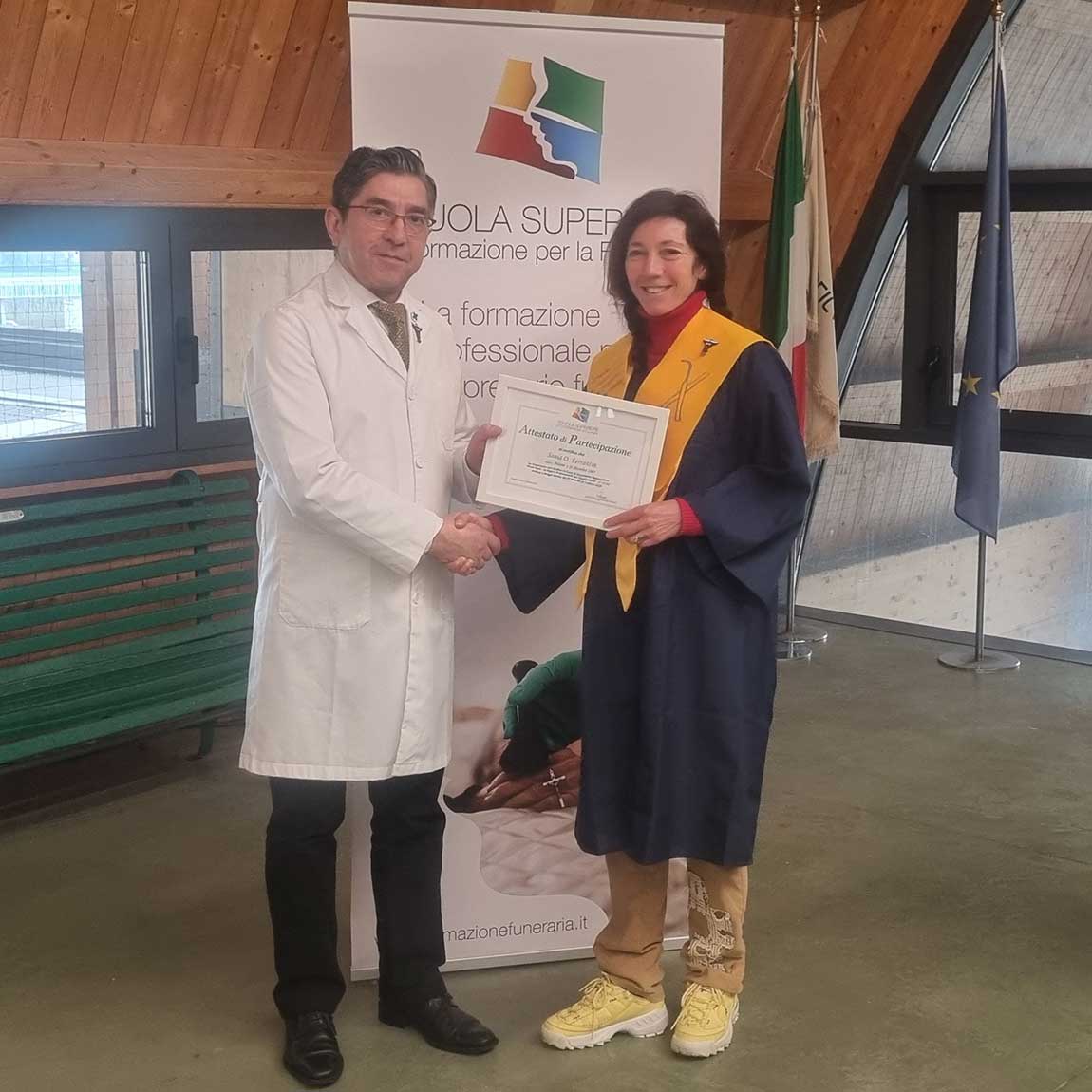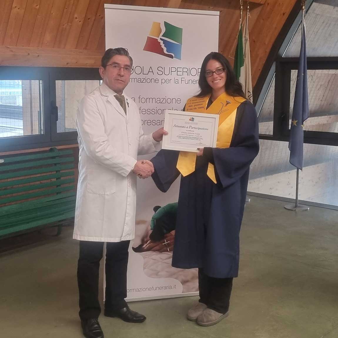 Il livello conclusivo del percorso formativo di alta specializzazione in tanatoestetica proposto dalla SSFF ha consentito ai sei partecipanti. Questi. oltre ad aver completato un percorso didattico, hanno saputo favorire lo scambio di esperienze e conoscenze.