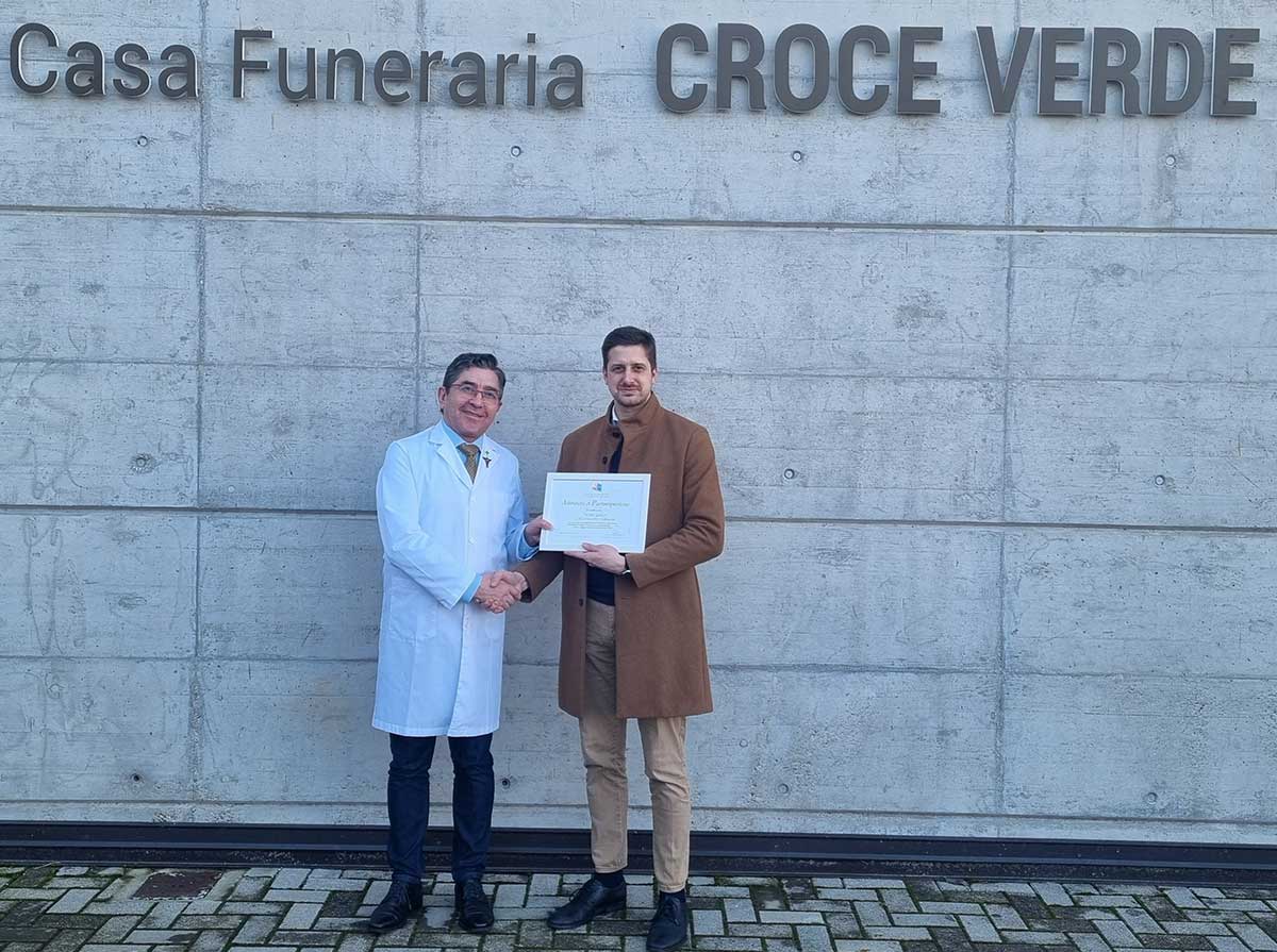Ha conseguito le proprie specializzazioni in Spagna (Universidad de Salamanca – Universidad Rey Juan Carlos) e in Francia (Institut Français de Thanatopraxie).