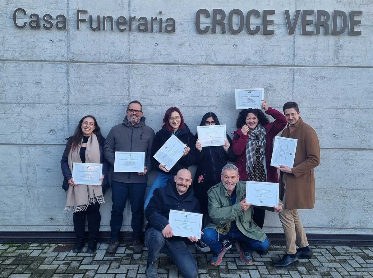 Coinvolti ed estremamente motivati gli 8 partecipanti, alcuni dei quali al primo approccio con i temi della funeraria.