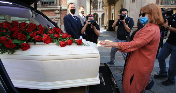 Il feretro è stato esposto nella Sala della Passione, una cassa di legno bianco, sulla quale la moglie Elena Gregori ha voluto sistemare la targa con la decorazione della Legione d’onore, appoggiandovi sopra anche un papillon giallo, gli occhiali di Daverio e una rosa rossa.