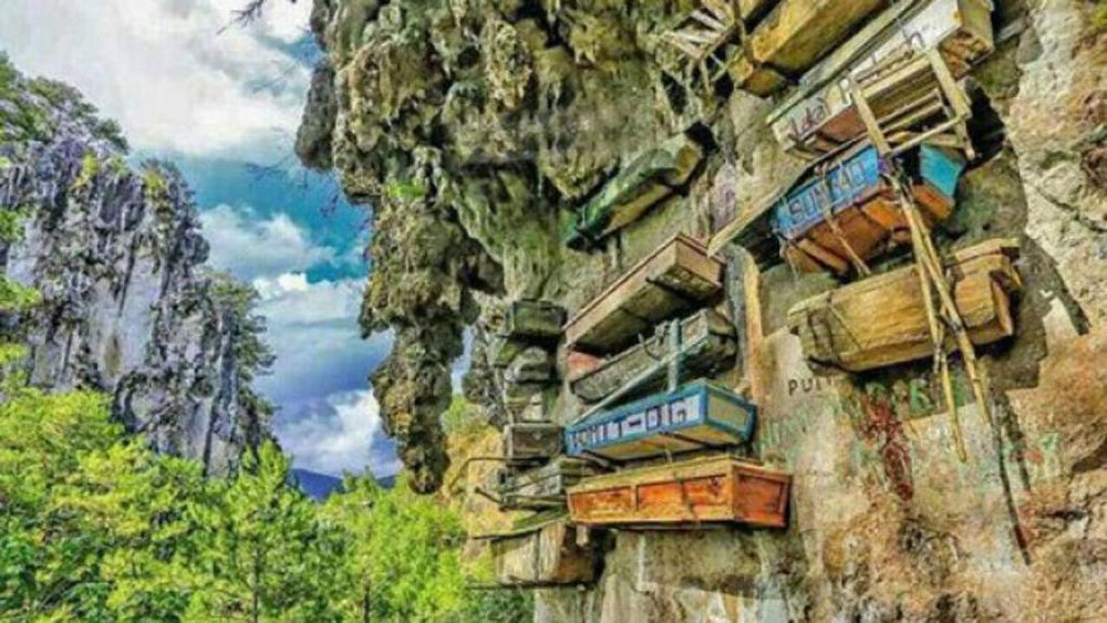 Altro che sottoterra. C’è un posto dove le bare vengono tenute in bella mostra, “incastonate” sul lato brullo di una montagna, a picco sulla foresta, per facilitare il passaggio delle anime verso l’aldilà. Stiamo parlando di Sagada, città dell’isola di Palawan, nelle Filippine, perfetta per chi ama le atmosfere macabre e dissacranti. È così che gli Igorot, la popolazione residente nella regione montuosa di Sagada, onoravano i morti, costruendo delle bare di legno che venivano personalizzate per poi essere issate sulla montagna. Una pratica che voleva difendere le salme dalle inondazioni e dagli animali, oltre che simbolicamente offrirle al cielo. Le bare che si possono ammirare oggi nella Echo Valley hanno più di un secolo: un rituale unico al mondo, in grado ancora oggi di stupire. I turisti non possono avvicinarsi troppo al cimitero verticale: solo la famiglia del defunto ha il diritto di toccare la bara, ma esiste un sentiero sterrato e scosceso che porta ai piedi della parete funeraria. Insomma, un panorama distante anni luce dai paradisi costieri di Palawan, una delle isole più belle al mondo, con i suoi atolli corallini e baie incontaminate nascoste tra le scogliere e un mare color smeraldo, in cui vale la pena addentrarsi per conoscere meglio l’identità e la sacralità dal posto.