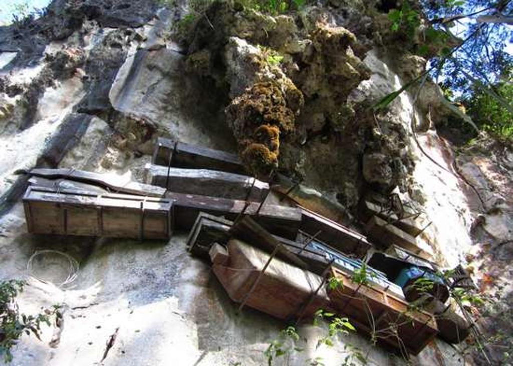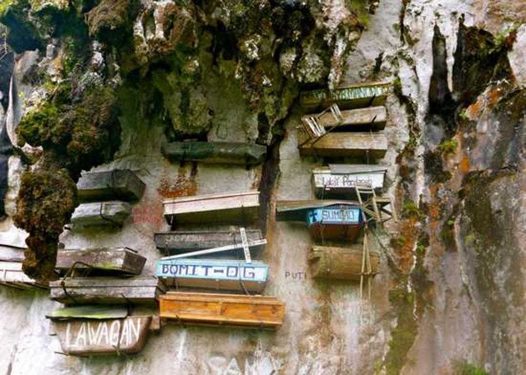 Filippine. Un cimitero verticale con le bare incastonate su una montagna.