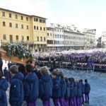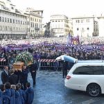 “Per noi sei luce”. Nel giorno dell’ultimo saluto a Davide Astori tutta la città di Firenze e il mondo del calcio si stringono intorno alla famiglia del capitano viola scomparso domenica a 31 anni. Dopo la maxi processione alla camera ardente di calciatori, sportivi e tifosi – oltre 12mila – alle 10 di giovedì nella Basilica di Santa Croce a Firenze l’addio al capitano viola. Lo strazio della compagna Francesca Fioretti, le lacrime di tanti volti noti del mondo del calcio e di tantissimi tifosi che hanno gremito la piazza antistante la basilica. Sciarpe, striscioni, scritte “Per sempre il nostro capitano”. “C’è solo un capitano” hanno intonato i tifosi all’uscita del feretro, cori e applausi, le note dell’inno della Fiorentina. Astori sarà seppellito nella sua città natale, San Pellegrino.