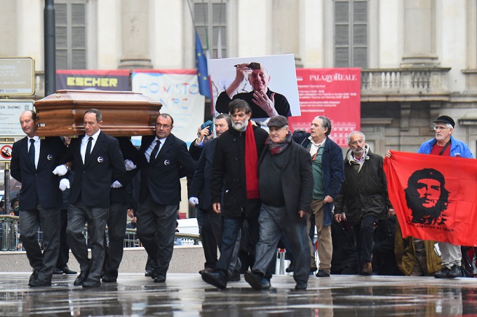 Milano. In migliaia per l’addio laico a Dario Fo.