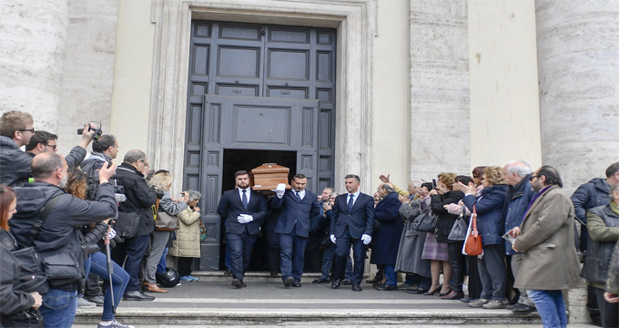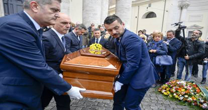 Roma. Funerali di Luigi De Filippo: colleghi, amici e qualche politico per l’ultimo saluto.