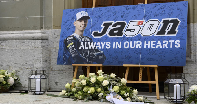 Disperazione, tristezza e tanto dolore. In questo clima si sono tenuti i funerali di Jason Dupasquier, pilota di Moto3 deceduto in Italia, dopo il terribile incidente avvenuto al Mugello. Le esequie si son tenute presso la chiesa di Saint-Pierre-aux-Liens a Bulle, alla presenza non solo dei familiari e degli amici del pilota scomparso, ma anche di Jorge Viegas, presidente FIM, e di Carmelo Ezpeleta, Ceo Dorna. Il carro funebre, che trasportava il feretro di Jason Dupasquier, è stato scortato fino in chiesa da un gruppo di motociclisti che hanno voluto omaggiare così il pilota scomparso.