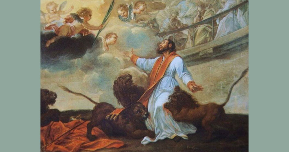 Il 17 ottobre del 107 d.C., Ignazio fu sbranato dalle belve nell’anfiteatro Flavio (Colosseo) durante i festeggiamenti per l’imperatore Traiano.