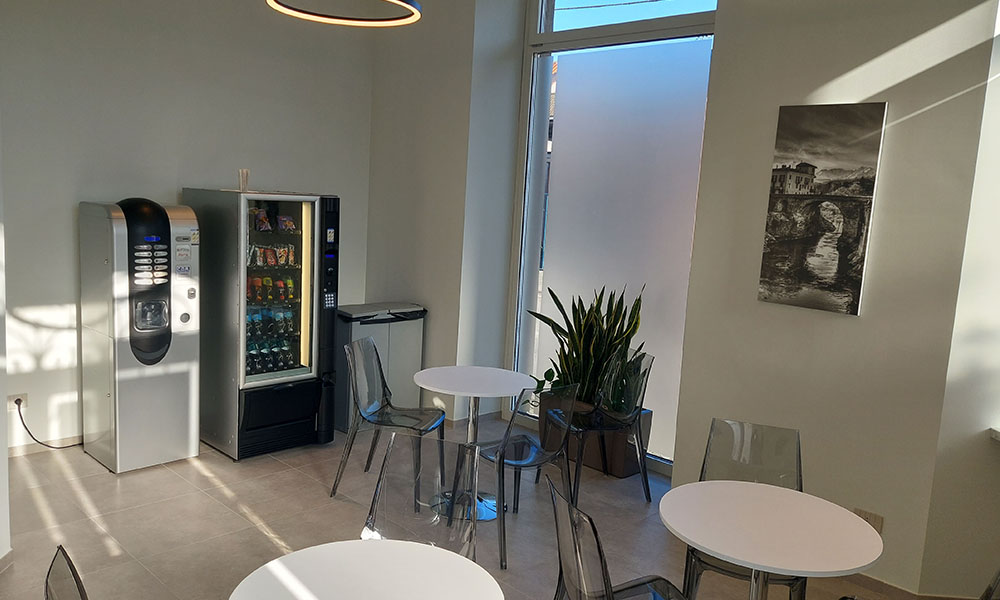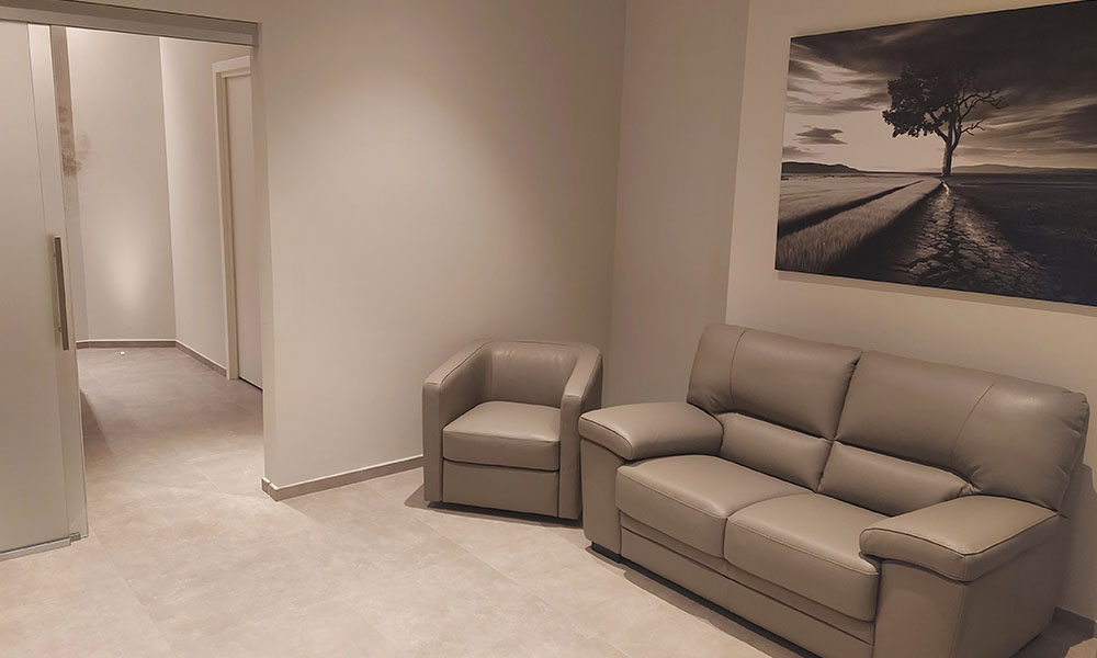 Una stampa ritrae Ernesta Marra in Ranieri, nata nel 1921 e figlia di Valentino Marra, che fece costruire il palazzo. La modernità, invece, connota gli ambienti tecnici, dal corridoio nero, previsto per legge, all’obitorio interno fino all’autorimessa. Abbiamo puntato sull’innovazione e sugli alti standard qualitativi: anche per l’impianto di raffreddamento e riscaldamento. Inoltre, abbiamo allestito anche un’area ristoro e ogni spazio è videosorvegliato.”