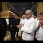Oltre 1.000 chef francesi e di tutto il mondo, nonché migliaia di ammiratori, hanno partecipato ai funerali di Paul Bocuse, considerato il “Papa” della cucina francese, scomparso all’età di 91 anni nella sua locanda di Collonges-au-Mont-d’Or. Ai funerali celebrati nella cattedrale Saint-Jean ha preso parte anche il ministro dell’Interno ed ex sindaco di Lione, Gérard Collomb, che nei giorni scorsi annunciò la scomparsa del grande cuoco. Tre stelle Michelin per oltre mezzo secolo, Bocuse ha ispirato generazioni di cuochi, tra cui Alain Ducasse o Joel Robuchon. “Trasmettere è la cosa più importante, non si impara la cucina nei libri” diceva. “E poi mangiare da soli non è divertente: è più bello condividere“.