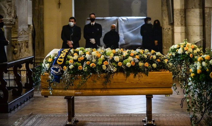 Il Covid non ha fermato l’ondata d’affetto di Milano nei confronti del calciatore. Seguendo scrupolosamente i protocolli anti coronavirus in circa un centinaio sono arrivati nella Basilica per assistere al funerale: tifosi nerazzurri, semplici appassionati di calcio o cittadini milanesi che vedevano nell’ex difensore anche un simbolo della città. Un lungo e rispettoso silenzio ha accolto alle 11 il feretro; sulla bara è stata posata una sciarpa nerazzurra, della sua Inter, il club cui è rimasto più fortemente legato nel corso degli anni.