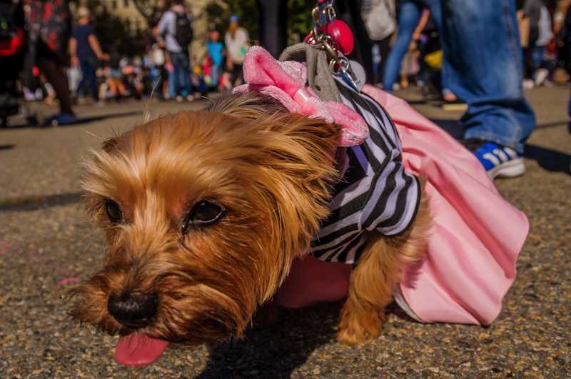 Anche quest’anno si è svolta la “Halloween dog parade”, la più grande manifestazione per cani del mondo. L’appuntamento era fissato per il pomeriggio di domenica 21 ottobre, come sempre al parco di Tompkins Square, a New York. Sono centinaia i cani che hanno partecipato, accompagnati dai loro padroni, anche loro in maschera. Il tema è la festa degli spettri, ma i cuccioli non erano tutti vestiti da fantasmi e vampiri: fiocchi rosa, borchie punk e addirittura cani-pesce, travestiti e inseriti in un acquario. Un grande spettacolo per gli amanti degli amici a quattro zampe e non solo!