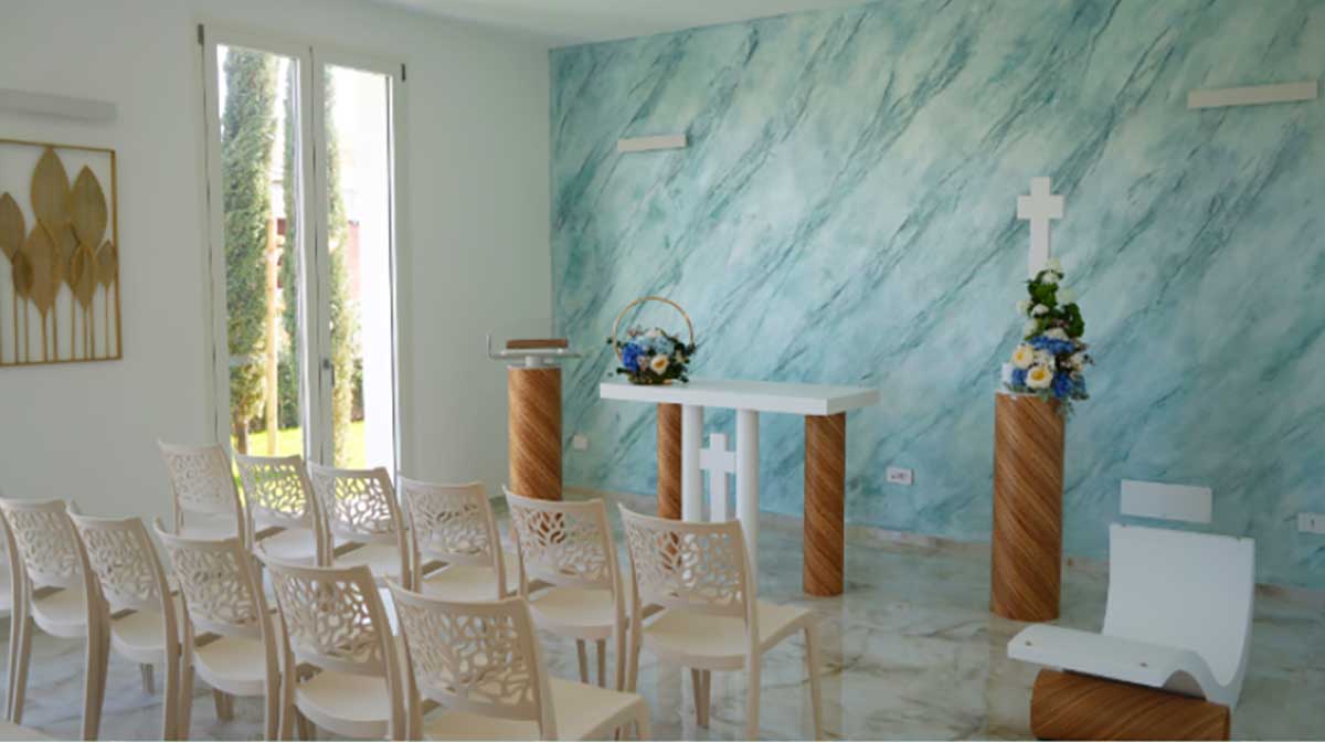 All’interno è presente anche una sala del commiato adatta a ospitare celebrazioni religiose o civili in un contesto intimo e rispettoso.