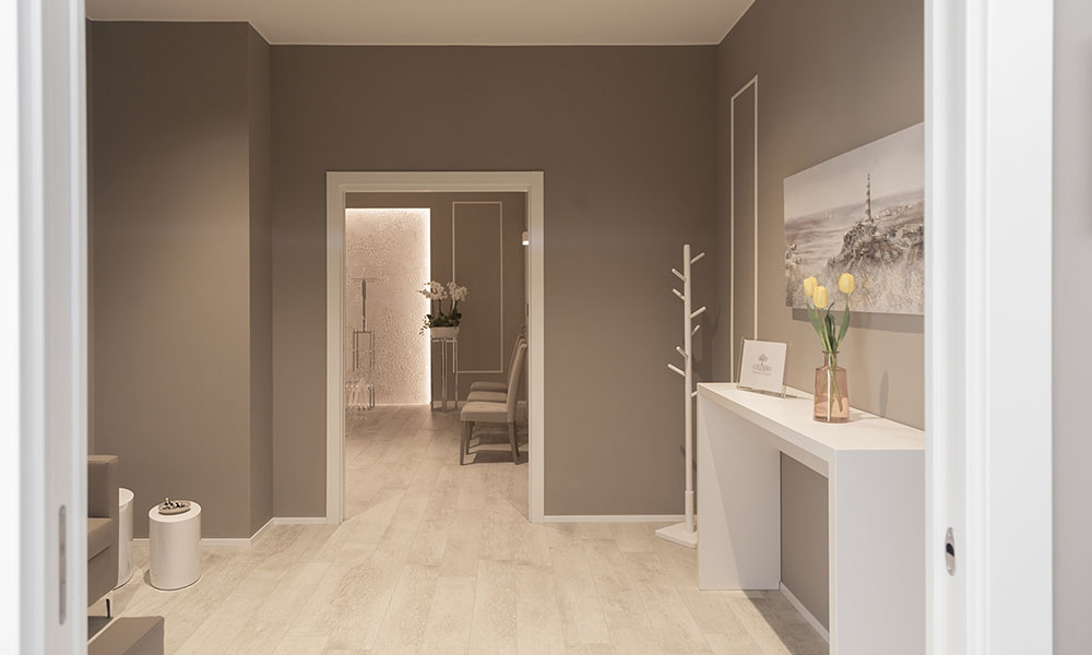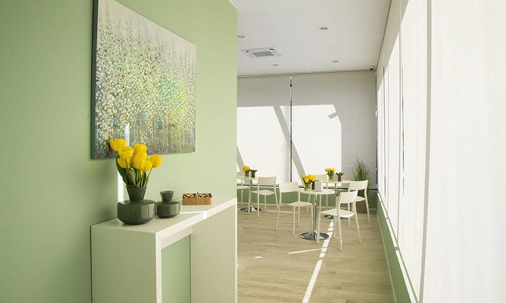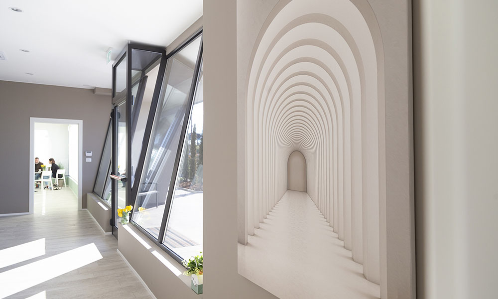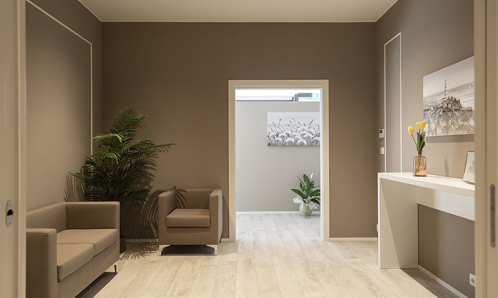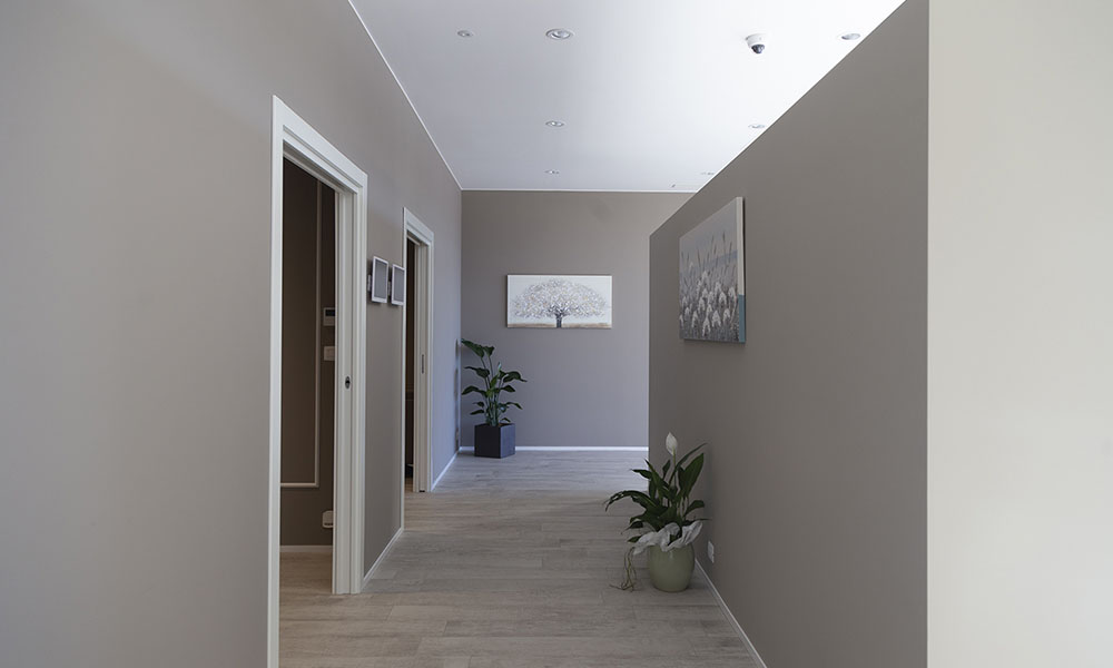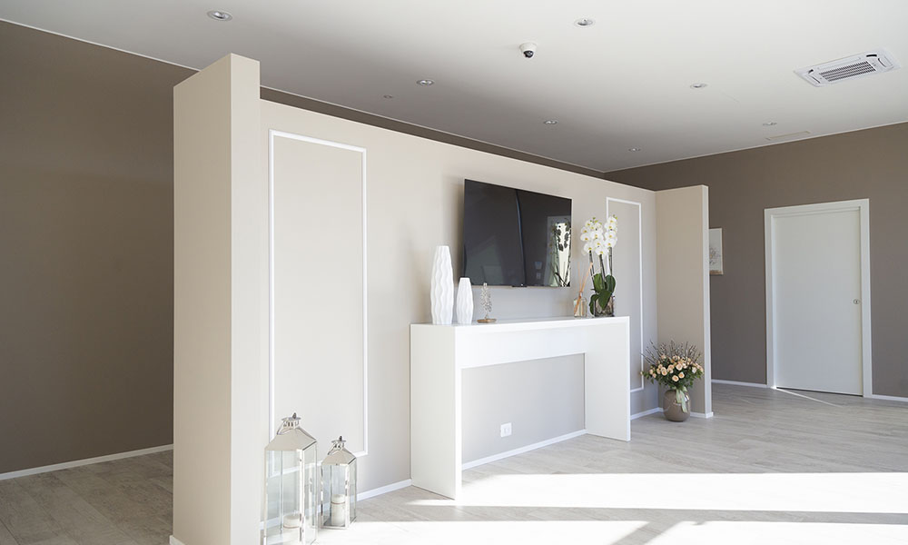 Particolare attenzione è stata dedicata agli esterni dell’edificio, con la creazione di un’area verde, una veletta che incornicia l’ingresso dei visitatori e una colorazione delle murature sobria, in grado di integrare armoniosamente le ampie vetrate della facciata. Gli interni, caratterizzati dall’eleganza, richiamano un’atmosfera domestica che si allinea perfettamente alla visione del team di progettisti di Architettura+.
