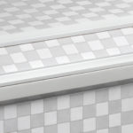 Realizzato in frassino massello con tavole intere da 30 millimetri, è stato corredato da un intarsio geometrico ricavato da bianchissimo Acero ghiaccio (da cui ha origine la denominazione “ice”). Particolarità di questo modello è l’aver opposto alle caselle la vena del legno ricreando una alternanza di colore e un gioco di ombre tridimensionali.