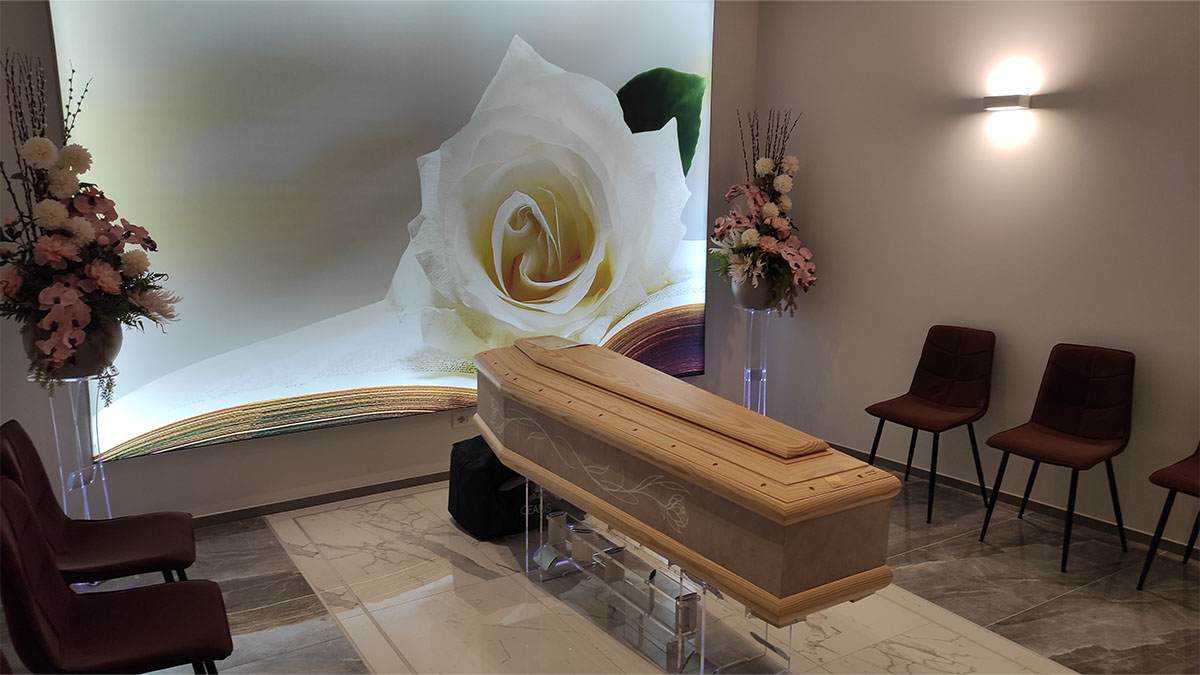 Si tratta di un servizio sempre più richiesto, che consente di superare le difficoltà logistiche degli ambienti domestici o ospedalieri, offrendo uno spazio adeguato al raccoglimento.