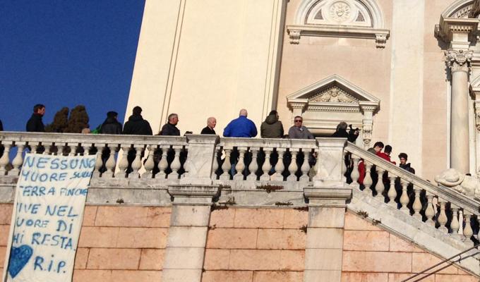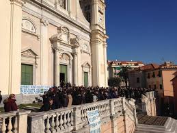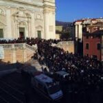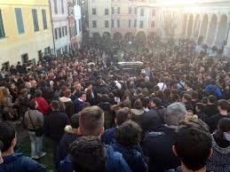 A Lavagna almeno duemila persone hanno partecipato nella Basilica di Santo Stefano ai funerali del ragazzo di 15 anni che si è tolto la vita gettandosi dalla finestra della sua abitazione mentre era in corso un controllo della Guardia di Finanza che qualche ora prima lo aveva sorpreso con della droga leggera. Una chiesa gremita a tal punto che centinaia di persone sono rimaste all’esterno e si sono disposte nel grande piazzale e sulla lunga balconata. Appeso c’era un cartello disegnato con lo spray con la scritta “nessuno muore sulla terra finché vive nel cuore di chi resta” e un grande cuore blu. Un altro cuore blu per un altro striscione con le parole di “in morte di SF” di Francesco Guccini e una foto del ragazzino suicida mentre gioca a calcio nella squadra in cui militava.