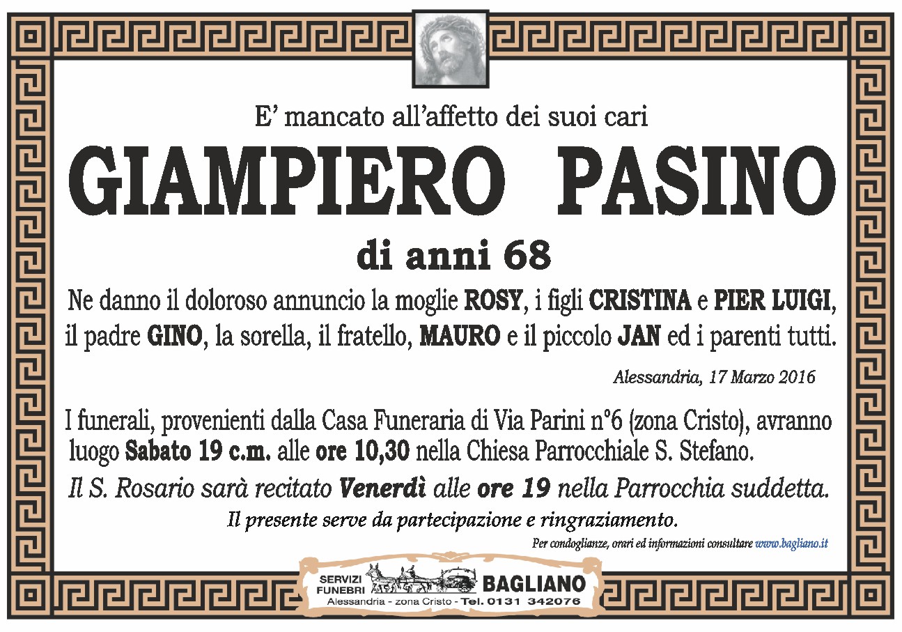 È prematuramente scomparso Giampiero Pasino.