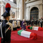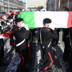 Si sono conclusi alle 10.45 nella Basilica di Santa Maria degli Angeli a Roma i funerali di Stato dell’ambasciatore Luca Attanasio e del carabiniere Vittorio Iacovacci, uccisi in un agguato in Congo. Dopo il “Silenzio” eseguito all’interno della chiesa, e al termine della cerimonia, le bare sono state portate in spalla dai carabinieri fuori dalla Basilica. Anche il premier Mario Draghi si è avvicinato alle famiglie delle vittime, riunite davanti ai due feretri con i carri funebri ancora aperti, all’esterno, dove si è anche svolto il picchetto d’onore.