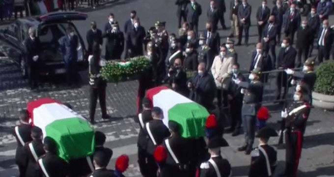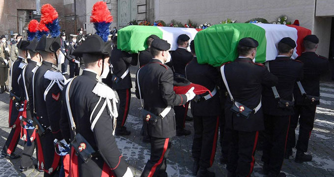 Roma. Funerali di Stato per l’Ambasciatore e il Carabiniere uccisi in Congo.