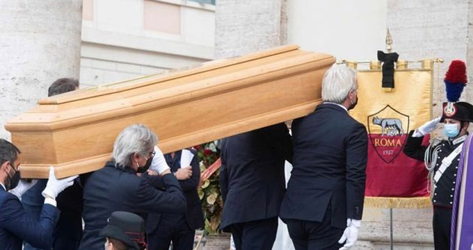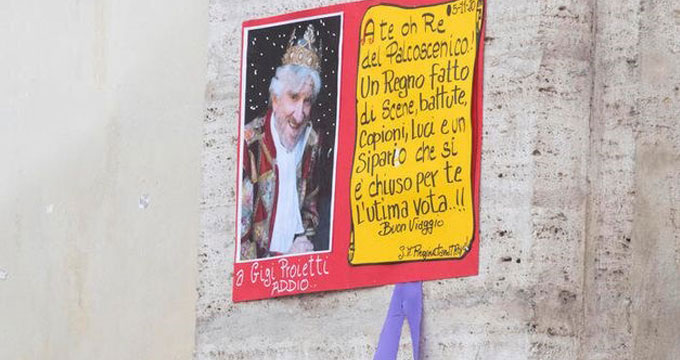 L’ultimo saluto a Gigi Proietti, scomparso il 2 novembre scorso nel giorno del suo ottantesimo compleanno, è stato al “suo” Globe Theatre. I funerali, iniziati con un corteo alle 10 di mattina, sono terminati con le esequie nella chiesa degli Artisti in piazza del Popolo. Una commemorazione aperta a pochi, circa 60 persone, per via delle restrizioni a causa del Covid, che hanno fatto sentire tutto il proprio affetto alle figlie Carlotta e Susanna e alla compagna di una vita Sagitta Alter.