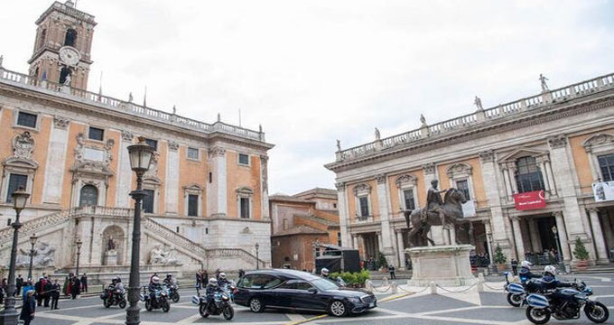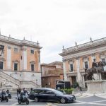 Dalla clinica dove il suo cuore si è fermato, il corteo funebre, seguito in diretta anche su Rai1, è arrivato in cima al Campidoglio. Poi il feretro, ricoperto di rose rosse, ha attraversato il centro, via del Corso, Piazza Barberini, via Veneto, in mezzo alla gente per lui ferma sui marciapiedi, ai tassisti con gli sportelli aperti e agli applausi dalle finestre. Al Globe Theatre di Villa Borghese, che Proietti ha creato e guidato per 17 anni e che da domani porterà il suo nome, un lungo applauso accompagna la sua ultima entrata. In collegamento anche la sindaca Virginia Raggi, risultata positiva al Covid, “Ci mancherai” dice. “Quando finirà la pandemia organizzeremo qualcosa di più grande”.