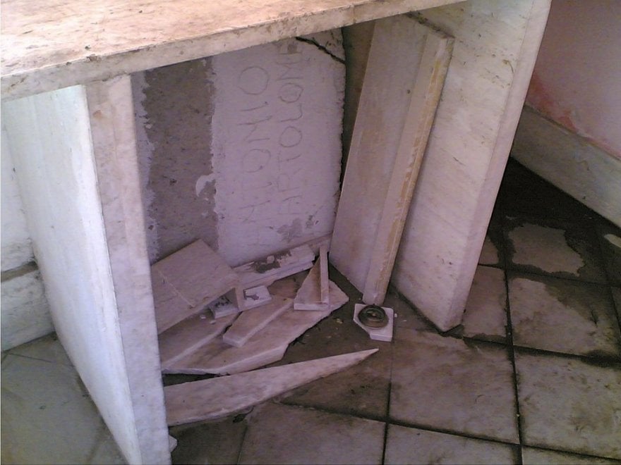 Roma. Il cimitero Flamino nel degrado: lapidi rotte, crepe sui muri e intonaco a pezzi.