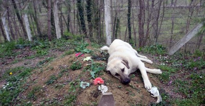 La storia che vogliamo raccontarvi è una storia di amore e fedeltà. È la storia di Zozo, un bel cagnolone diventato triste dopo la morte improvvisa del suo amato padrone. La scomparsa dell’uomo che lo ha cresciuto e che gli ha dato tanto amore, ha lasciato un vuoto incolmabile nel cuore di Zozo, tanto che, da quando è stato sepolto, il cane ogni giorno si reca sulla sua tomba per piangerlo. İsmail Öztürk, questo il nome dell’uomo, lasciò per sempre la sua famiglia ed i suoi cari nel febbraio del 2014: da quel momento, Zozo, il suo fedele cane, diventò triste per la perdita dell’amato umano. Pochi giorni dopo la morte di İsmail, Zozo scappò non facendo più ritorno a casa, i suoi familiari lo cercarono per ore ed ore senza trovare nessuna traccia, sembrava scomparso, finché Zafer (figlio di İsmail) non decise di andarlo a cercare nei pressi della tomba del padre dal quale, quando era in vita, Zozo non si separava mai, infatti, il cane era proprio lì steso sul terreno che ricopriva la bara. Da quel momento in poi, ogni giorno e fino ad oggi, Zozo ha preso l’abitudine di tornare, in compagnia di Zafer, a far visita al suo amato İsmail. Il cane si accuccia sulla parte superiore della tomba, con fare triste ed inconsolabile. Zozo sembra essere disperato nel gettarsi a terra accanto alla tomba e in quei momenti il cuore di Zafer non fa che spezzarsi ogni volta. Nonostante sia un momento estremamente triste, Zafer racconta di essere orgoglioso di doversi occupare di un cane così legato al suo padrone, sebbene defunto, e non desidera altri comportamenti, magari più giocosi e allegri, da parte sua. Ancora una volta questi splendidi animali hanno qualcosa da insegnarci: il loro amore incondizionato e la loro fedeltà non hanno limiti, quando ti amano lo fanno per tutta la vita.