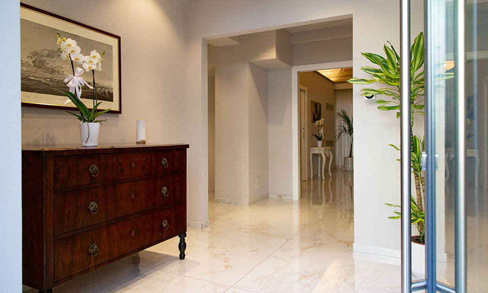 In effetti, la Casa Funeraria è alloggiata al piano terra di uno storico palazzo settecentesco, andando a occupare gli spazi limitrofi alla sede dell’Impresa.