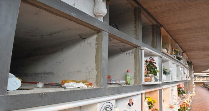 Terracina. Niente loculi al cimitero: bare in attesa di tumulazione.